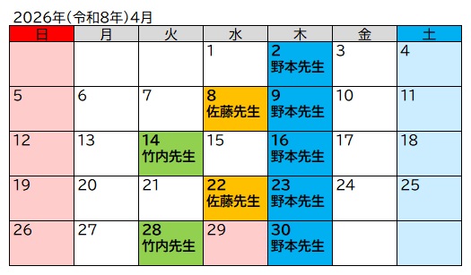 今月から新年度となり、専門家の先生も一部変更となりました。